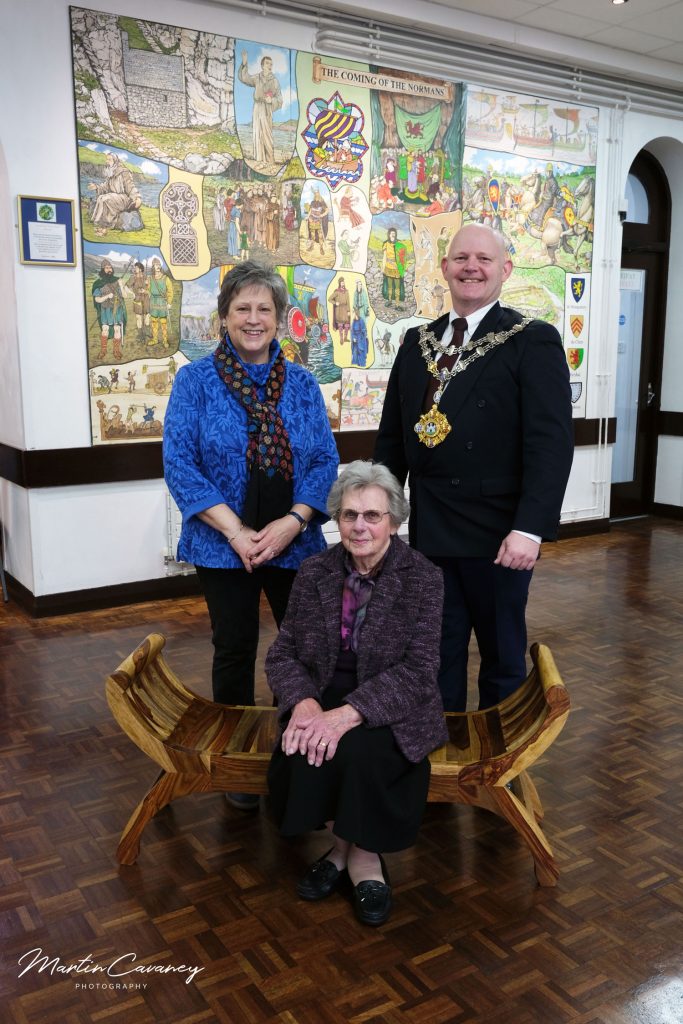 Mrs Jeanne Lewis and her daughter attended a special presentation at Pembroke Town Hall today to mark the 20th anniversary of the murals installed in the building. The benches, gifted by Pembroke Town Council, were presented in appreciation of the artwork created by Jeanne and her late husband, George Lewis, whose contribution continues to enrich the Hall two decades on.
